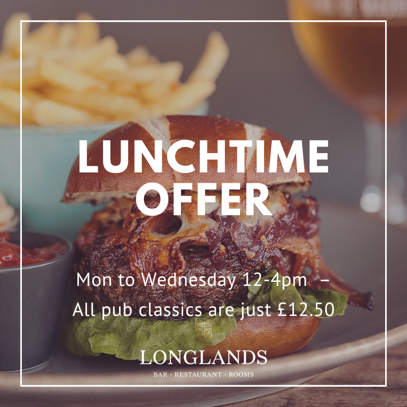 The Longlands main menu is served throughout the day and evening in the bar and our restaurant areas Monday to Saturday. Enjoy a great selection of starters, traditional pub classics or our handmade stone baked pizzas. We also have an exciting children’s menu and a delicious desserts counter for those with a sweet tooth.